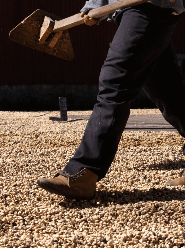 In order to unlock the flavors of these specialty beans, we pay homage to an age-old technique by gently drying our beans on traditional patios under the sun’s caress. During patio drying, the coffee is laid on the patio and is spread in thin layers and rotated regularly with a wooden palo to ensure an even drying process.